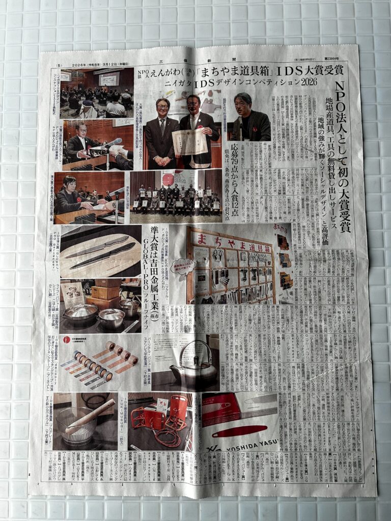 三篠新聞(2026年3月12日)にて、宮﨑製作所シリーズごはん鍋/おかず鍋/かこい鍋がIDS賞ライフ・バリュー賞を受賞したことをご掲載いただきました✨
