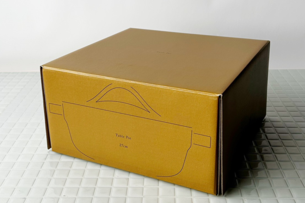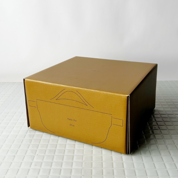 リサイクルしやすく、緩衝材も使わないで済むように、商品の箱(化粧箱)と外装箱(段ボール)を兼ね揃えたパッケージにしました。天面に直接運送会社の送り状を張り付けてお送りしております。