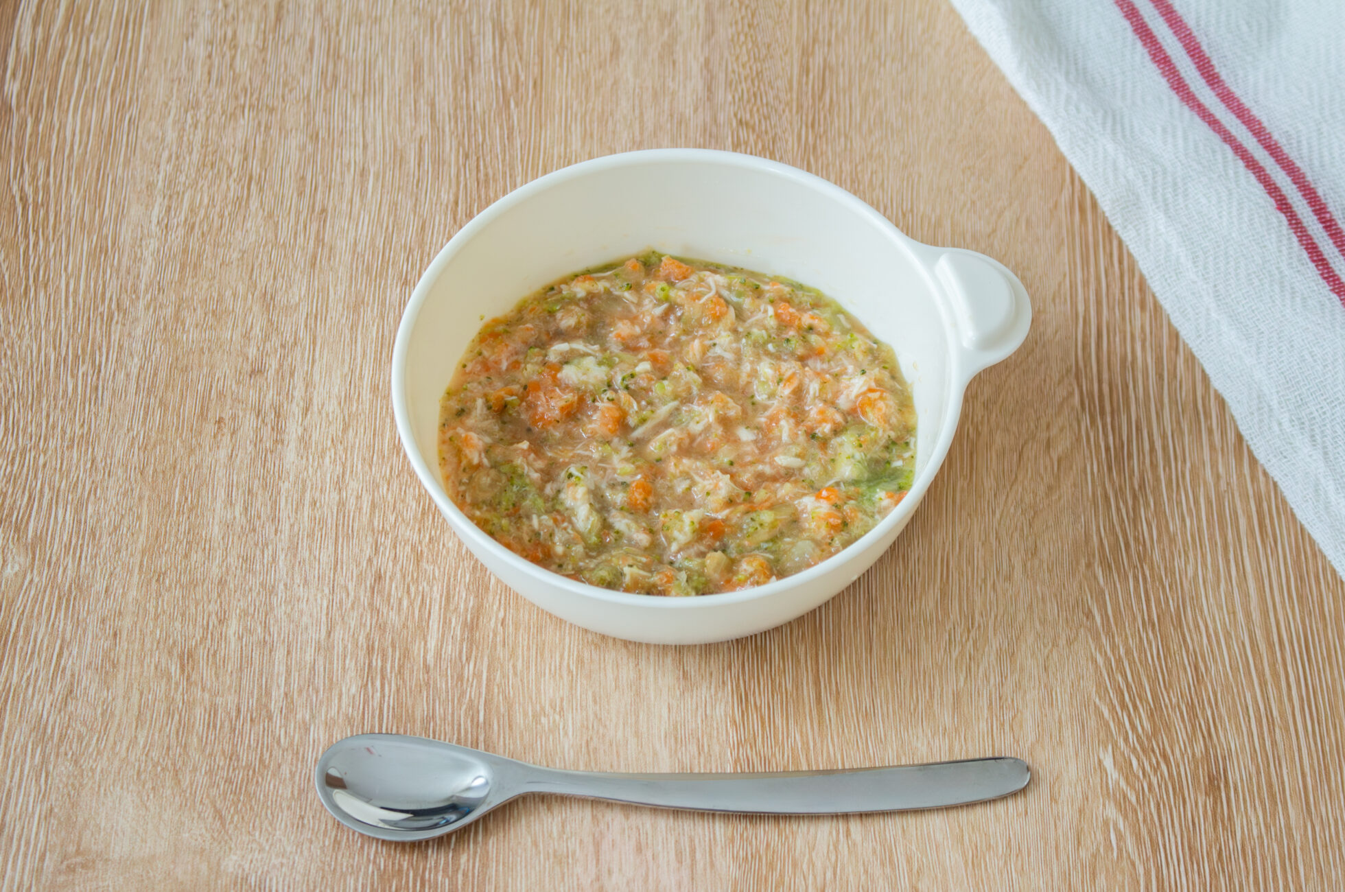 初期食は食べることに慣れる時期です。 赤ちゃんの体調や様子を見ながら、無理のないペースで進めましょう。 鶏ささみは豆腐、卵黄、白身魚に慣れた初期食の後半から始めましょう。 初めての食材はアレルギーの確認のため、1種類ずつの調理をお勧めします。