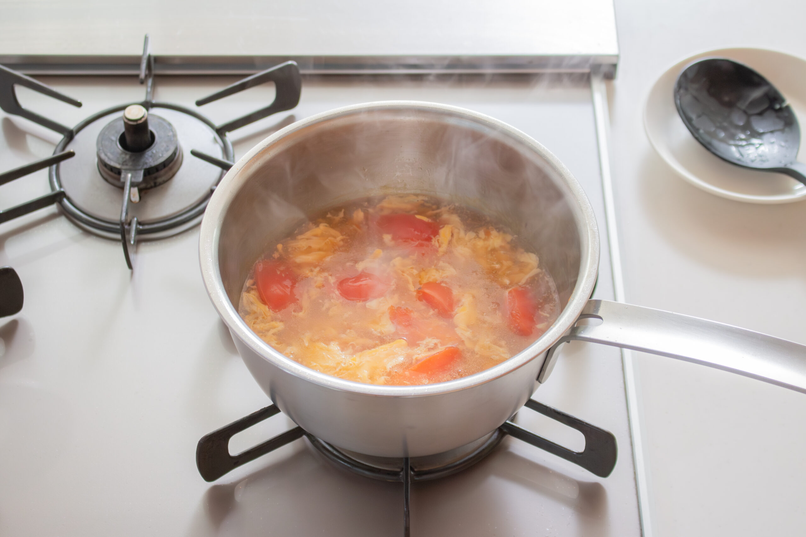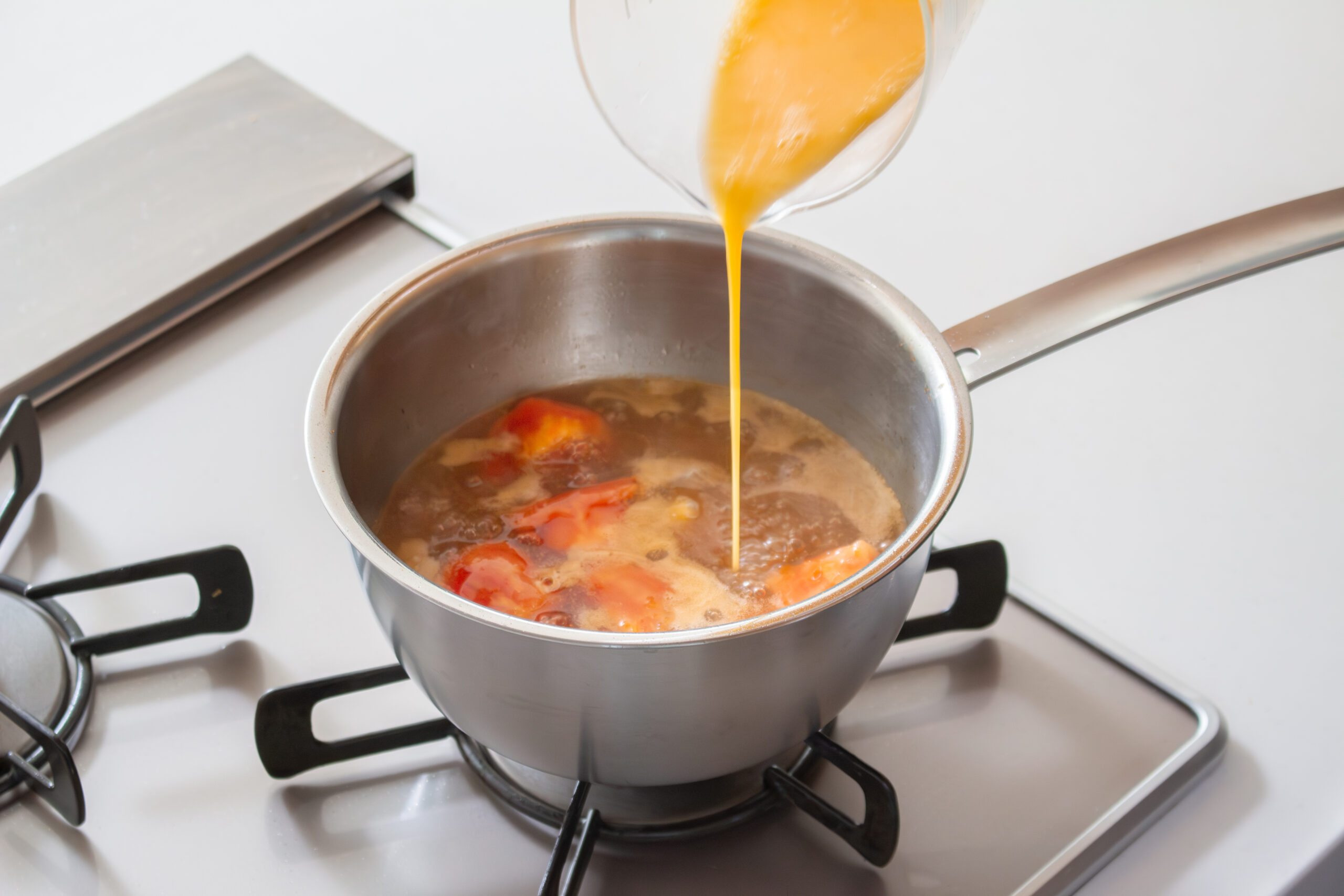 片栗粉を水大さじ1で溶いて②に加え、とろみをつける。